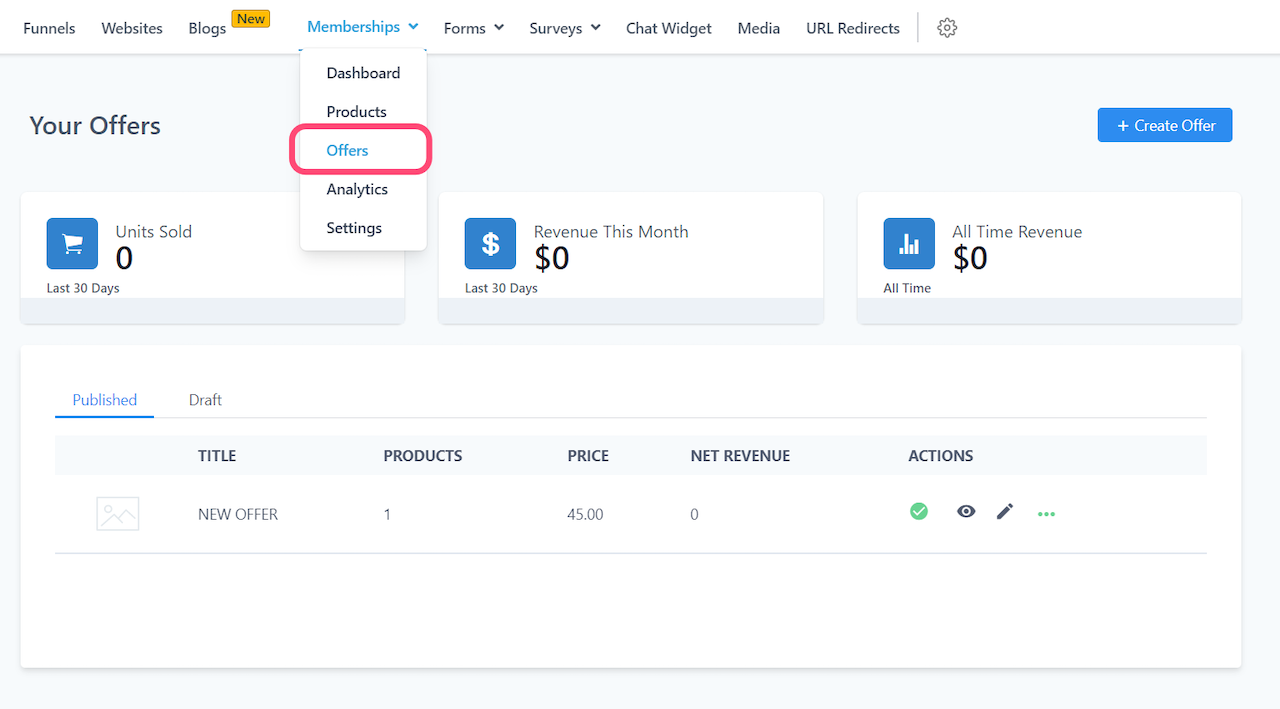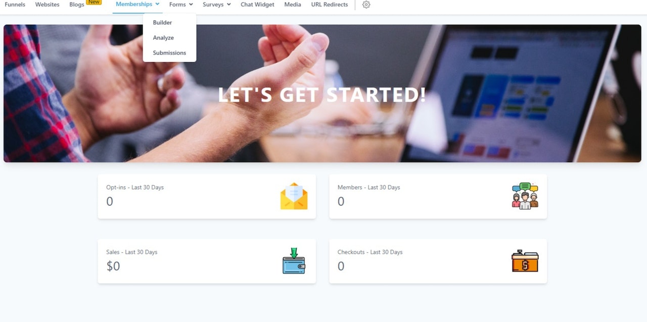 The first thing you'll see will be the Dashboard. This panel will show you the latest activity in your membership area in the last 30 days.