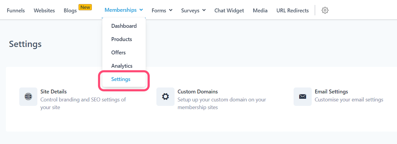 Memberships are separate from your websites and funnels, therefore it'll have its own domain and site settings. In order to have a membership area customized to your business, make sure to adjust these settings.